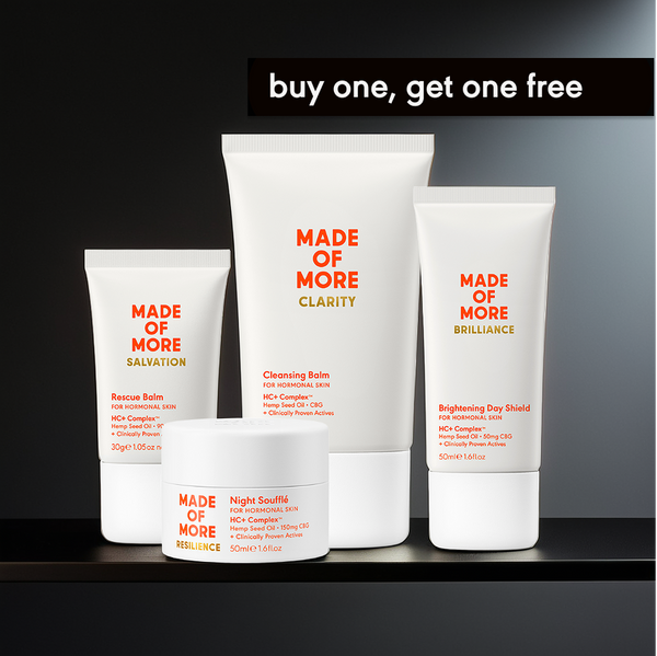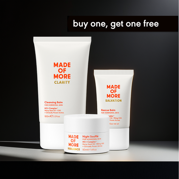"Skin can become easily antagonised by UV, blue light and pollution when affected by hormones - balance is key and this is where CBG comes in, a hero hydrating ingredient and a powerful antioxidant, it also helps to balance sebum keeping skin glowing and healthy without breakouts or redness."