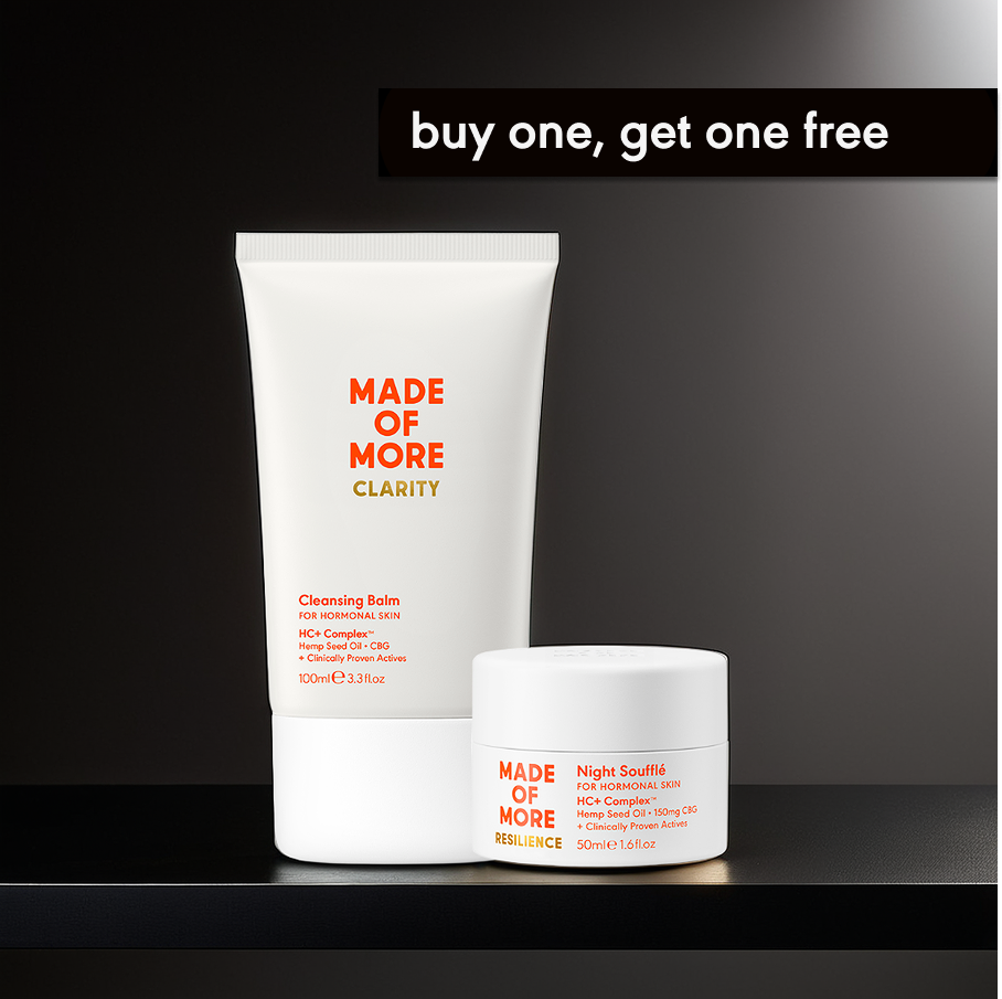 Our products combine British Hemp seed oil with CBG along with a potent blend of other clinical ingredients all designed to address the challenges of hormonal skin from 40 upwards. These ingredients work synergistically to tackle problem areas such as dull tired skin, collagen degradation, lack of sleep, fine lines, loss of skin tone and puffiness which are often combined with increased sensitivity and redness. Our complex works to support the skin during these times whilst avoiding some commonly known ingredients that can actually increase irritation at this time.