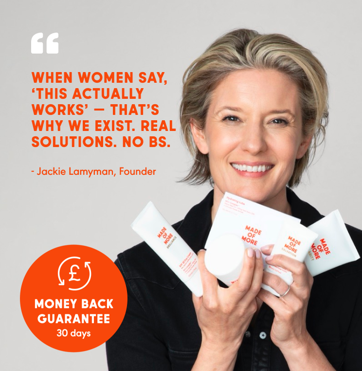 Our products combine British Hemp seed oil with CBG along with a potent blend of other clinical ingredients all designed to address the challenges of hormonal skin from 40 upwards. These ingredients work synergistically to tackle problem areas such as dull tired skin, collagen degradation, lack of sleep, fine lines, loss of skin tone and puffiness which are often combined with increased sensitivity and redness. Our complex works to support the skin during these times whilst avoiding some commonly known ingredients that can actually increase irritation at this time.