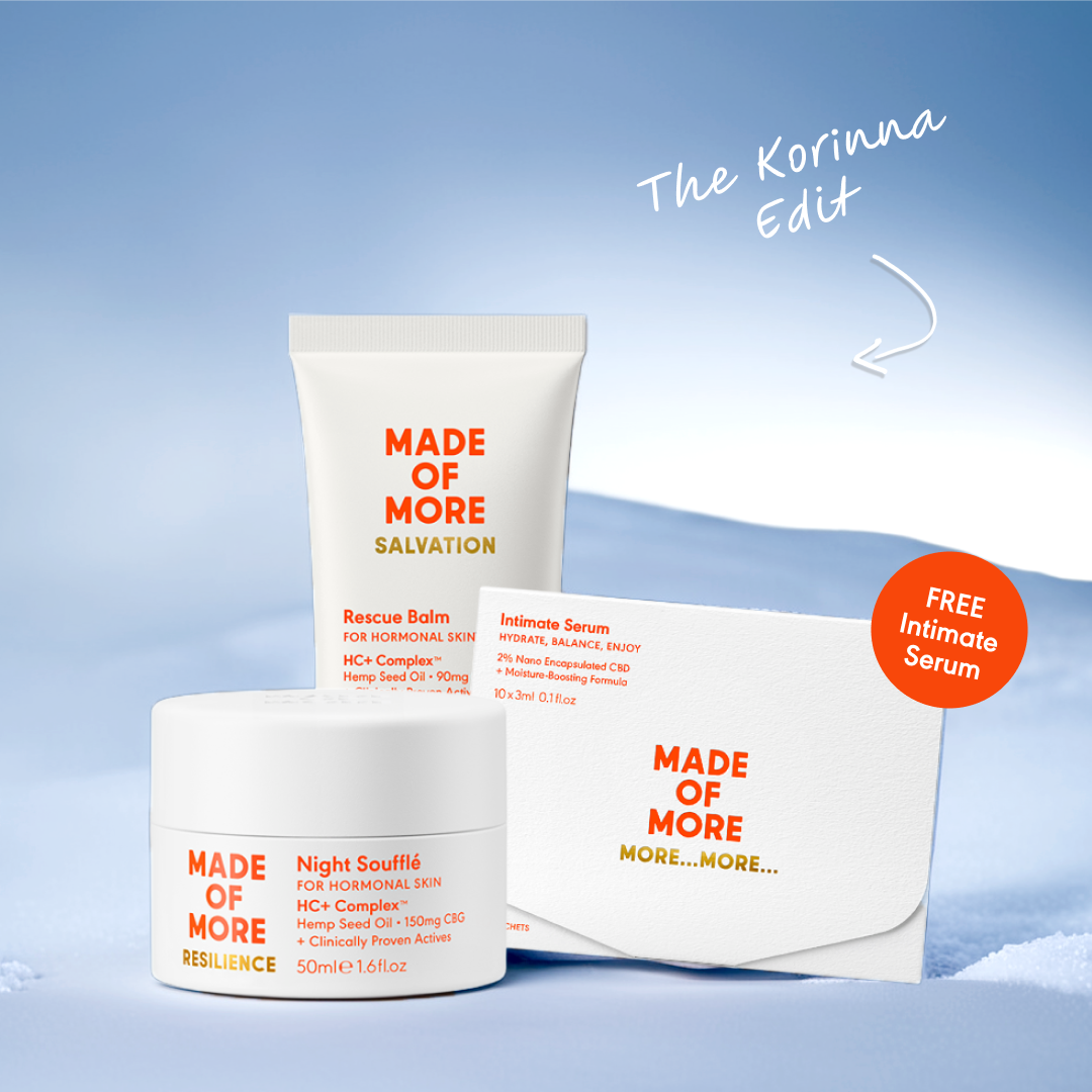 Our products combine British Hemp seed oil with CBG along with a potent blend of other clinical ingredients all designed to address the challenges of hormonal skin from 40 upwards. These ingredients work synergistically to tackle problem areas such as dull tired skin, collagen degradation, lack of sleep, fine lines, loss of skin tone and puffiness which are often combined with increased sensitivity and redness. Our complex works to support the skin during these times whilst avoiding some commonly known ingredients that can actually increase irritation at this time.