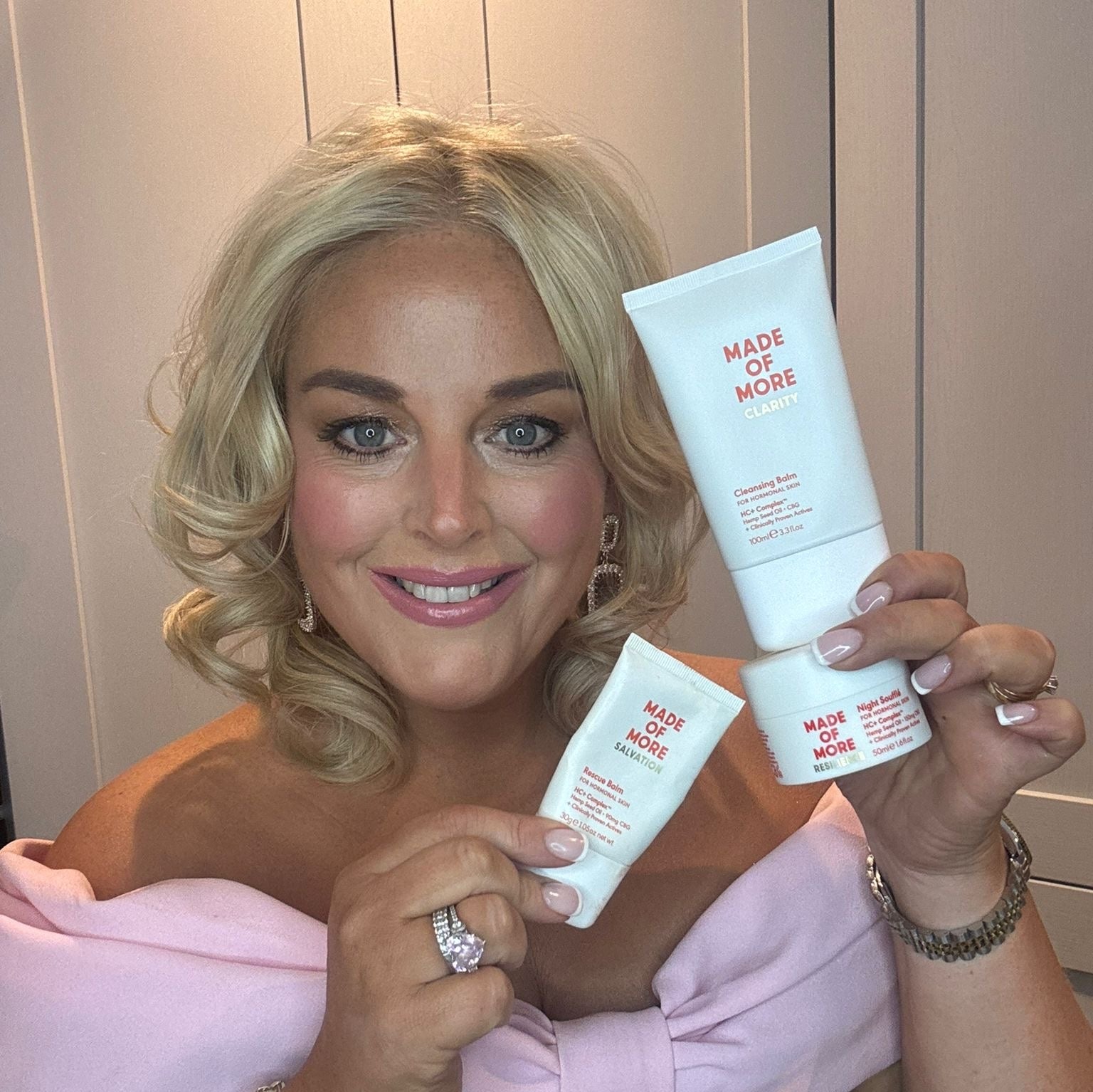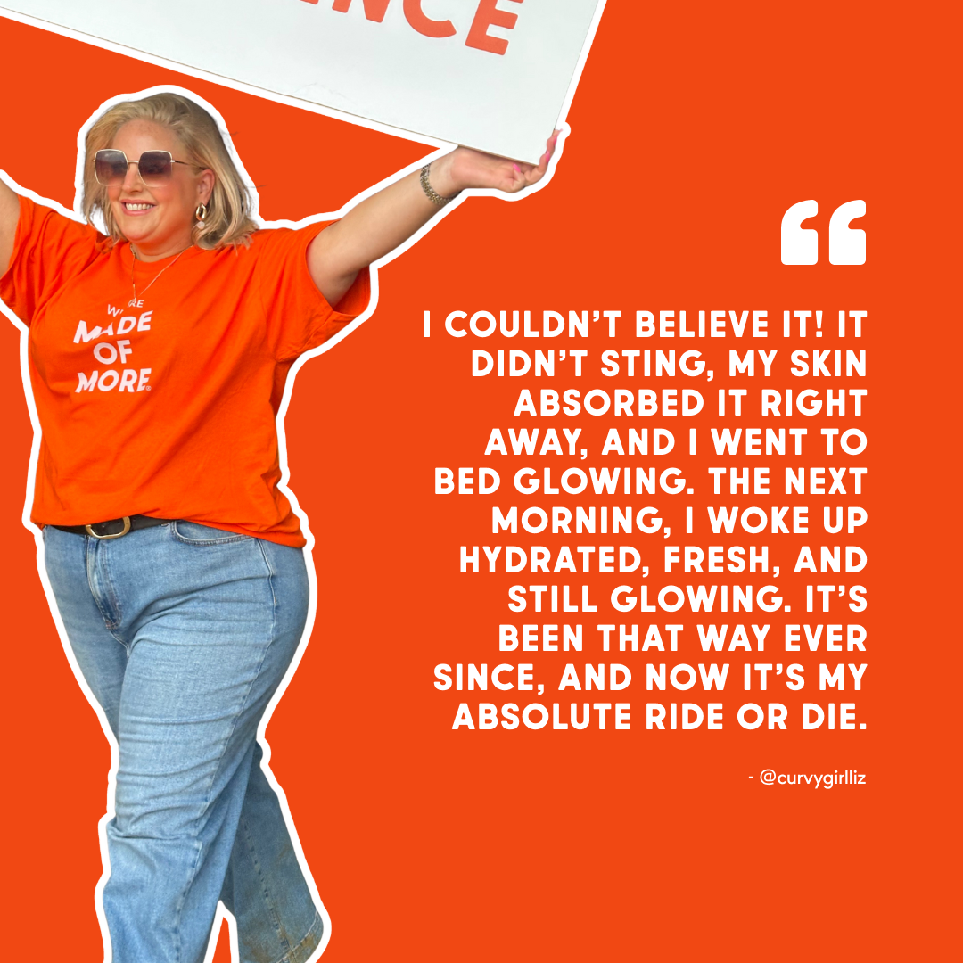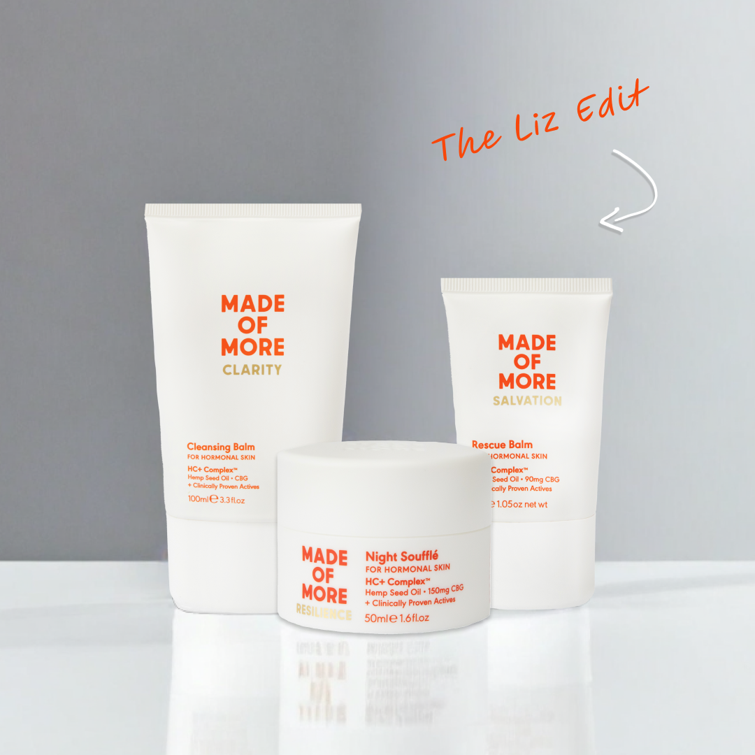 "Ladies, this is a limited edition bundle with a MEGA discount! Made Of More have created 'The Liz Edit' - my three absolute hero products that I couldn't live without. I have extremely dry and sensitive skin, I had given up looking for something that would work but then came along Made Of More... this routine has honestly transformed my skin, I now receive comments daily! Don't miss out on this mega deal." Liz Burt @curvygirlliz