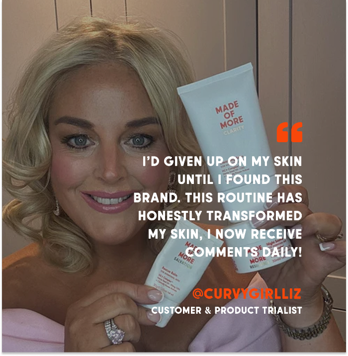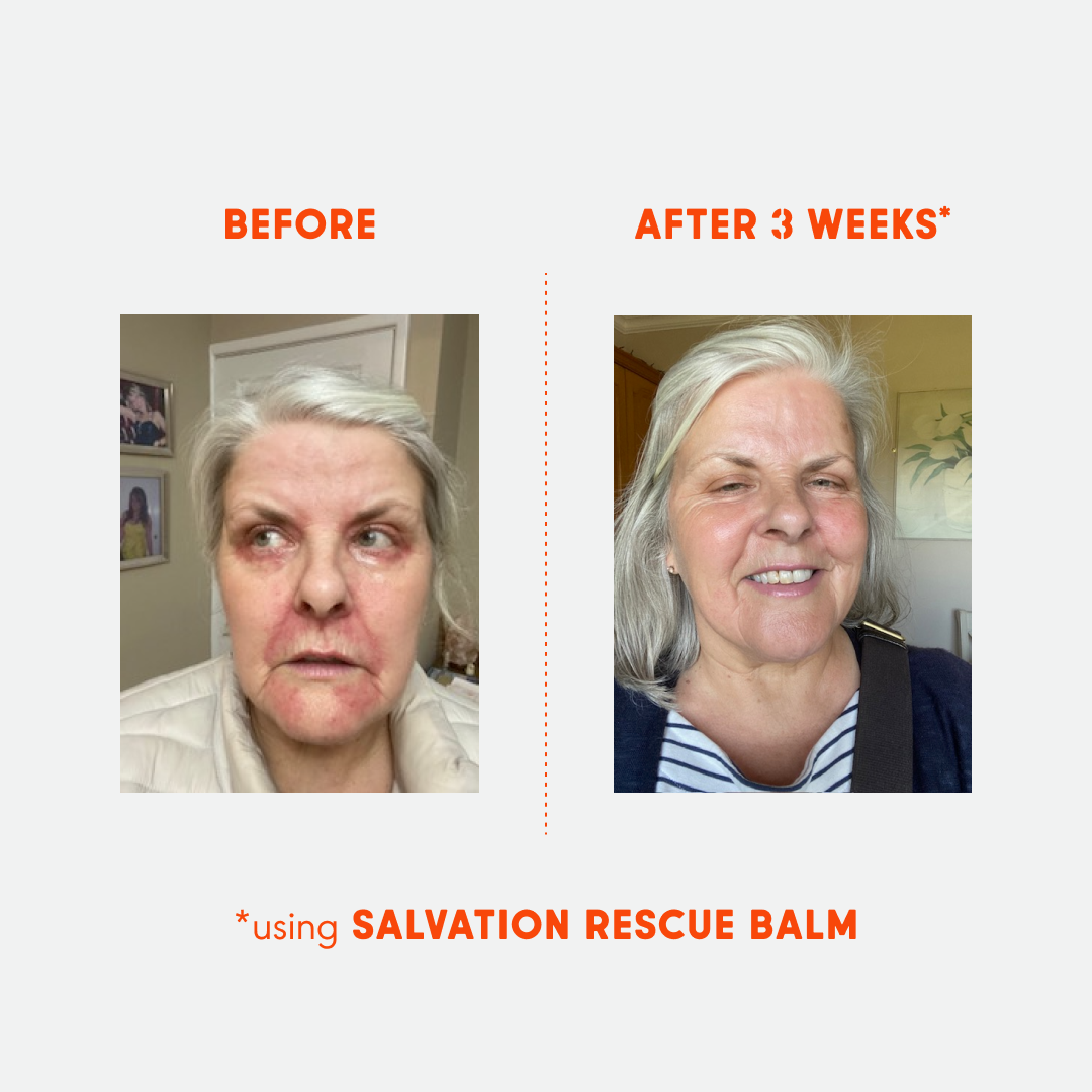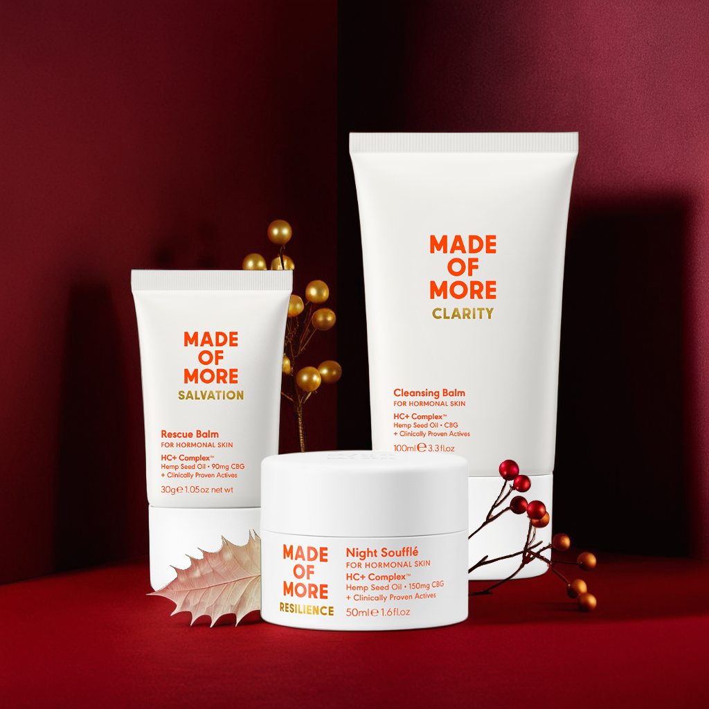Look no further. This three-step skin saving routine will have you rehydrated, plump and glowing in no time. CLARITY to gently cleanse without stripping, RESILIENCE to re-hydrate and treat skin to a great night's (sleep) repair and our award-winning SALVATION Rescue Balm for targeted calming. All clinically formulated to support hormonally-changing skin.